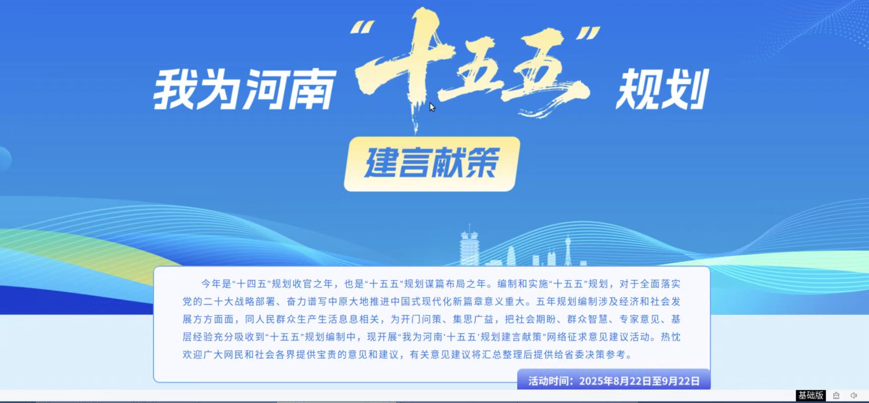 關(guān)于開(kāi)展“我為河南‘十五五’規(guī)劃建言獻(xiàn)策”網(wǎng)絡(luò)征求意見(jiàn)建議活動(dòng)的公告